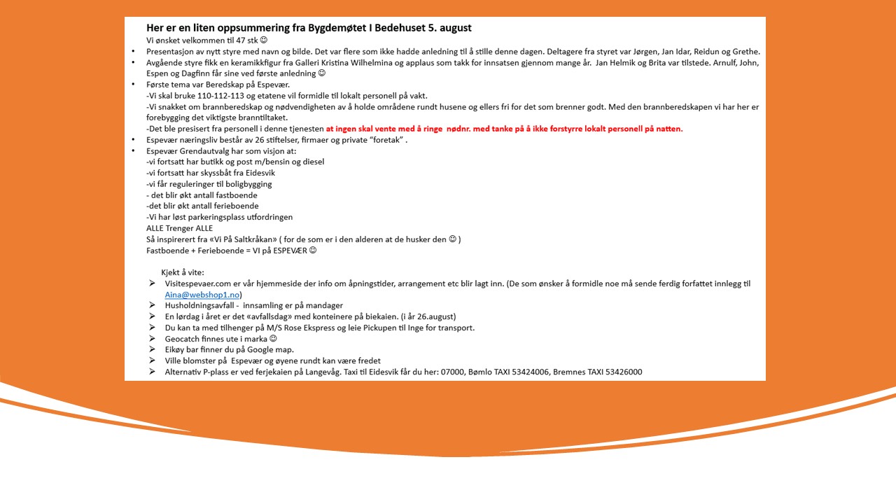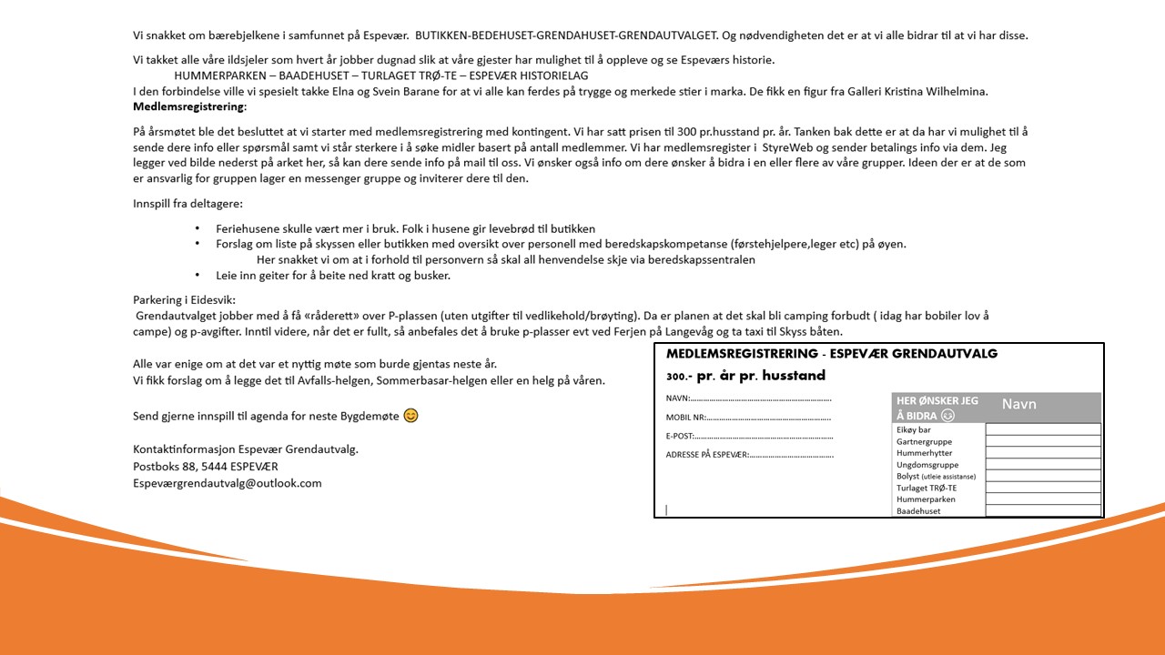 Det blir årsmøte lørdag 14.02.26, kl 14:00 i Espevær Grendahus. Se bilde for dagsorden. Vel møtt!