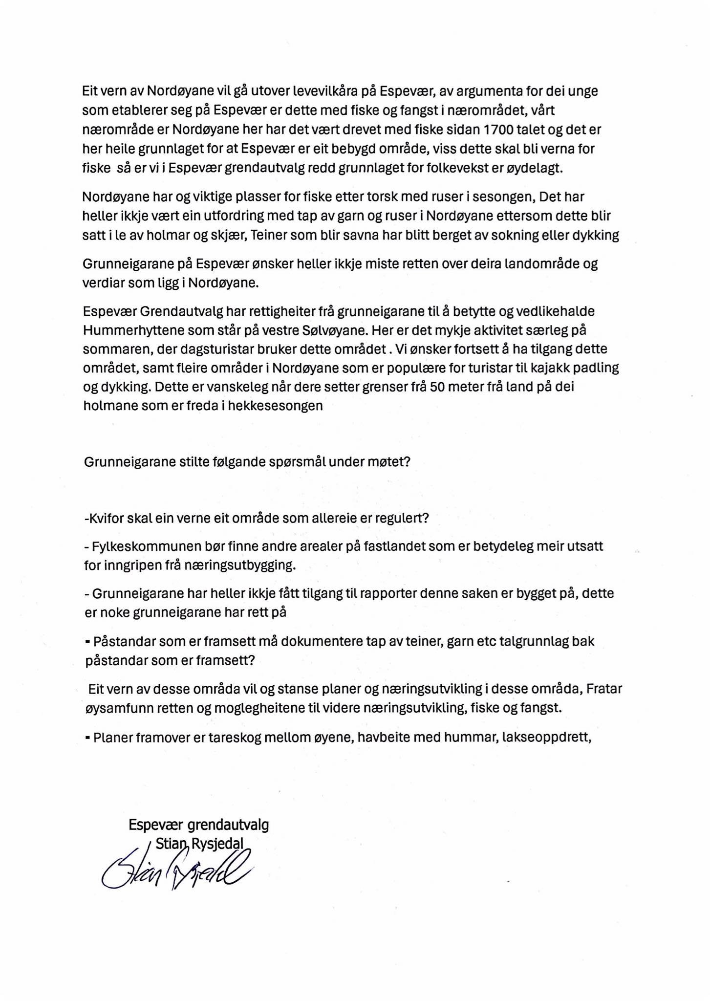 I sammen med grunneierne for Nordøyane jobber grendautvalget for å svare ut forslaget om vern.