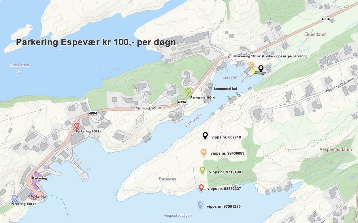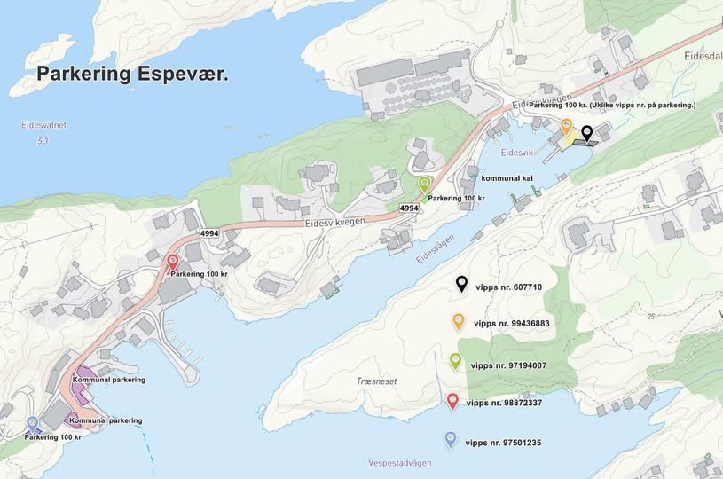 Tur til Espevær i påsken. Her finner du oversikt over hvor det er mulig å parkere bilen